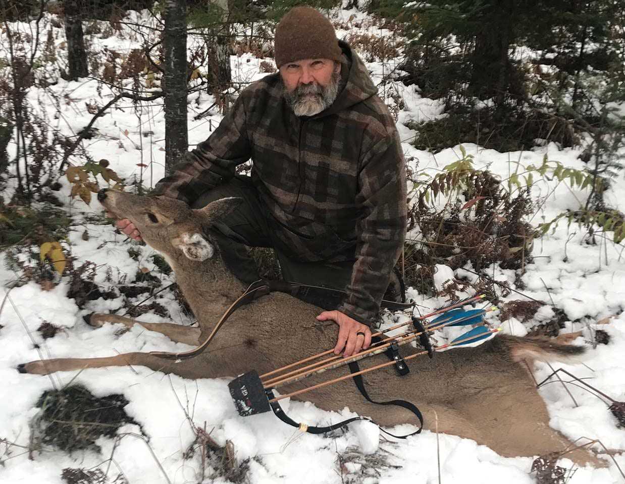 Shrew Haven deerhunting camp is a legendary place to stay. Located in the amazing Upper Peninsula of Michigan the group of the Shrew Haven members are meeting there every fall to bowhunt and to enjoy the stay in the Shrew Haven deerhunting camp. This is the place where we fieldtest the Shrew Bows to guarantee every single Shrew Bow will be a perfect hunting bow in the hand of a traditional bowhunter. Roger harvested a nice doe 2 days ago.