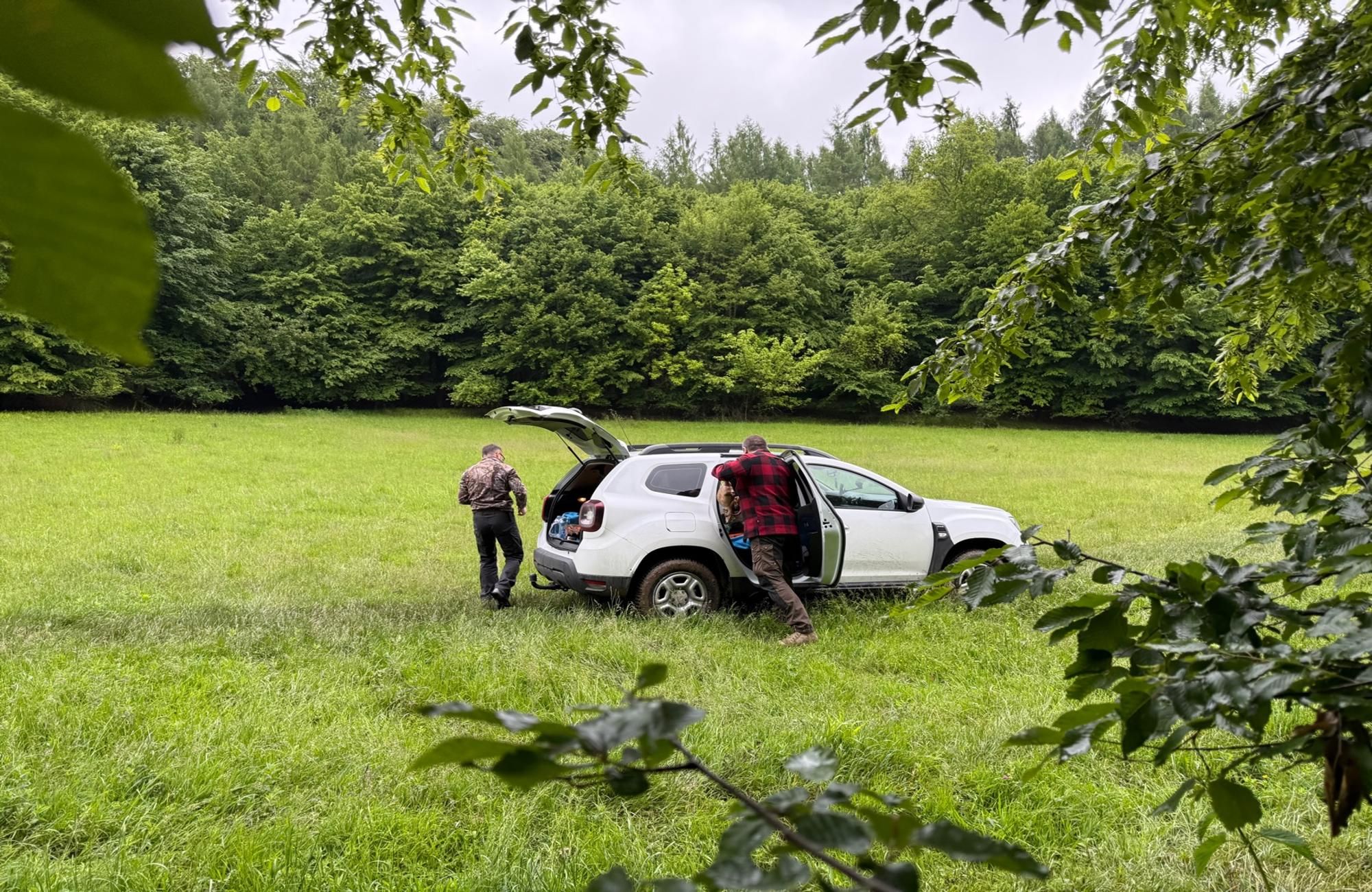 Unsere Anfahrt zum Gelände wurde zum Abenteuer: Unser Volvo, nicht geländetauglich, blieb im Schlamm stecken – wir mussten Hilfe holen.