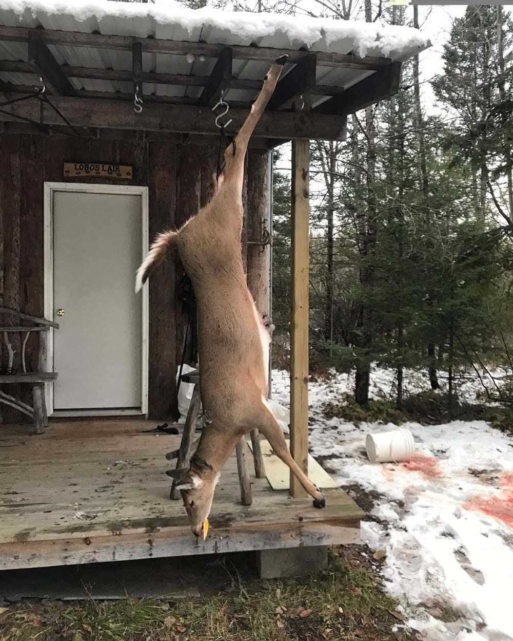 Shrew Haven deerhunting camp is a legendary place to stay. Located in the amazing Upper Peninsula of Michigan the group of the Shrew Haven members are meeting there every fall to bowhunt and to enjoy the stay in the Shrew Haven deerhunting camp. This is the place where we fieldtest the Shrew Bows to guarantee every single Shrew Bow will be a perfect hunting bow in the hand of a traditional bowhunter. Roger harvested a nice doe 2 days ago.