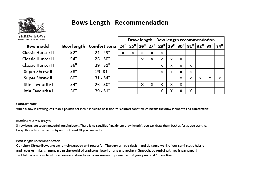 Every day we have customers contacting us, asking for advice on which Shrew Bow model and which bow length they should shoot.